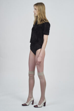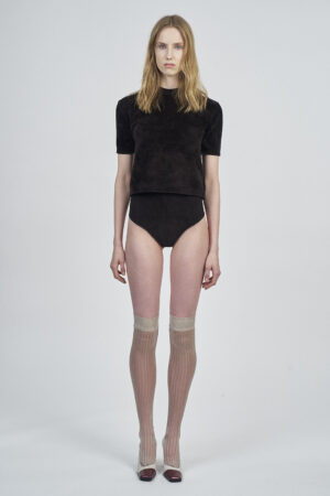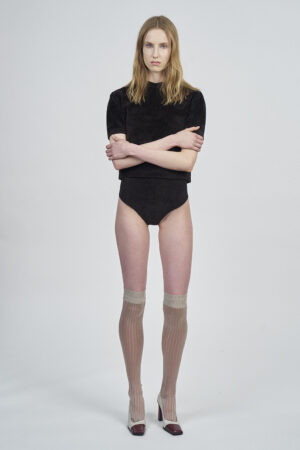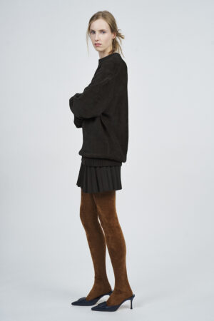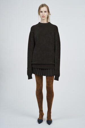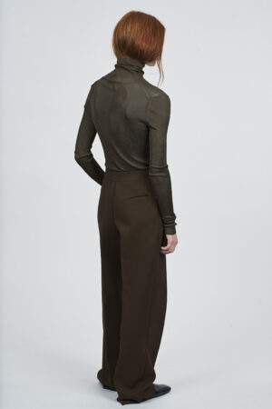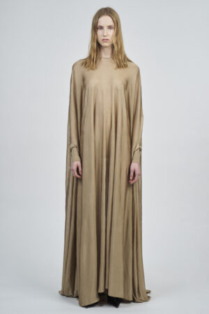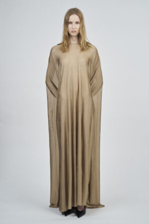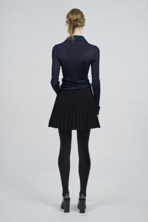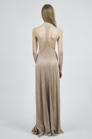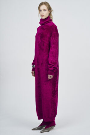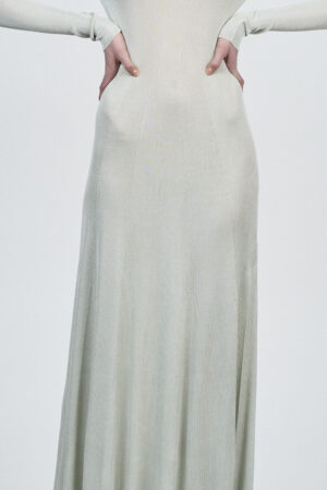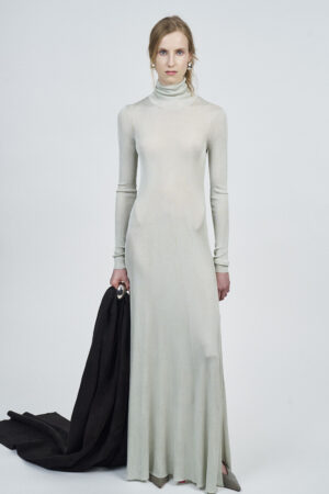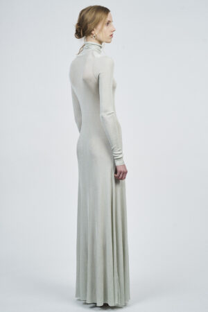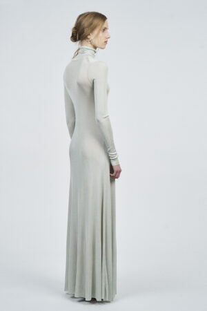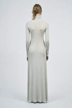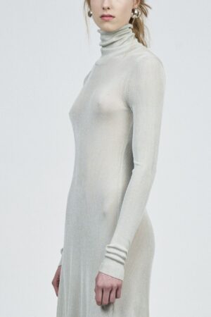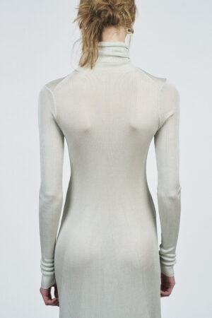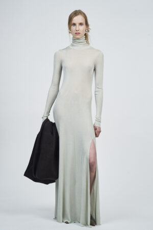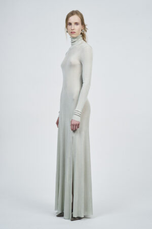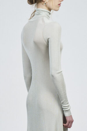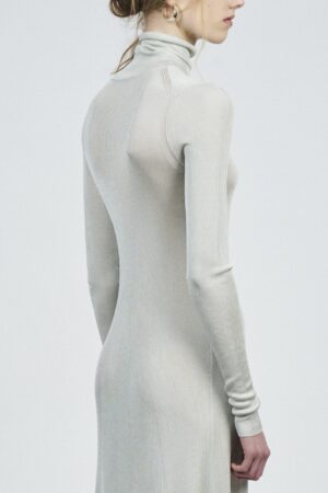 LIQUID RIBBED SLITTED TURTLE NECK LONG DRESS | ACQUA