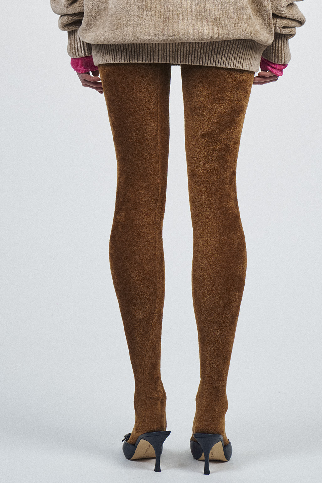 SOVEN knitted chenille tights with fitted legs are made for a comfort fit. They feature a ribbed waistband and semi-seamless construction.