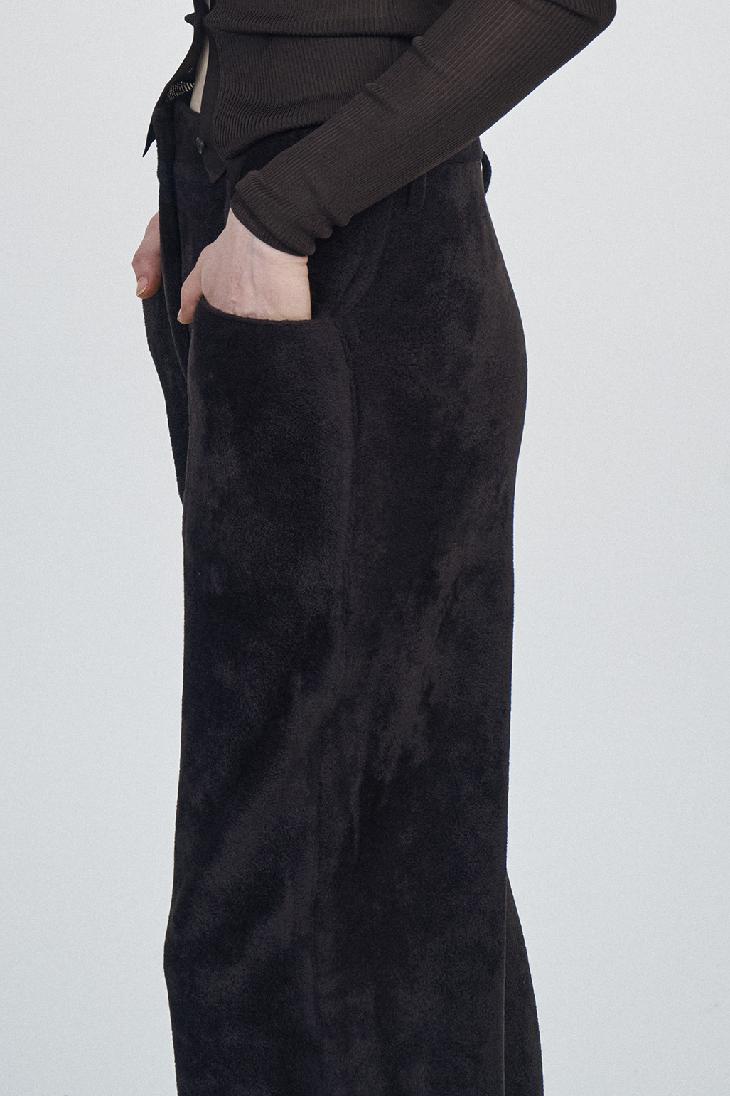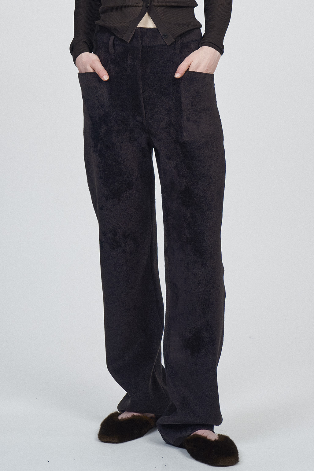 CHENILLE WIDE LEG KNITTED PANTS | MORO DARK BROWN